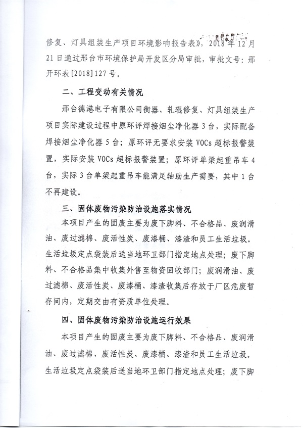 關(guān)于邢臺(tái)德港電子有限公司竣工環(huán)境保護(hù)驗(yàn)收合格的函
